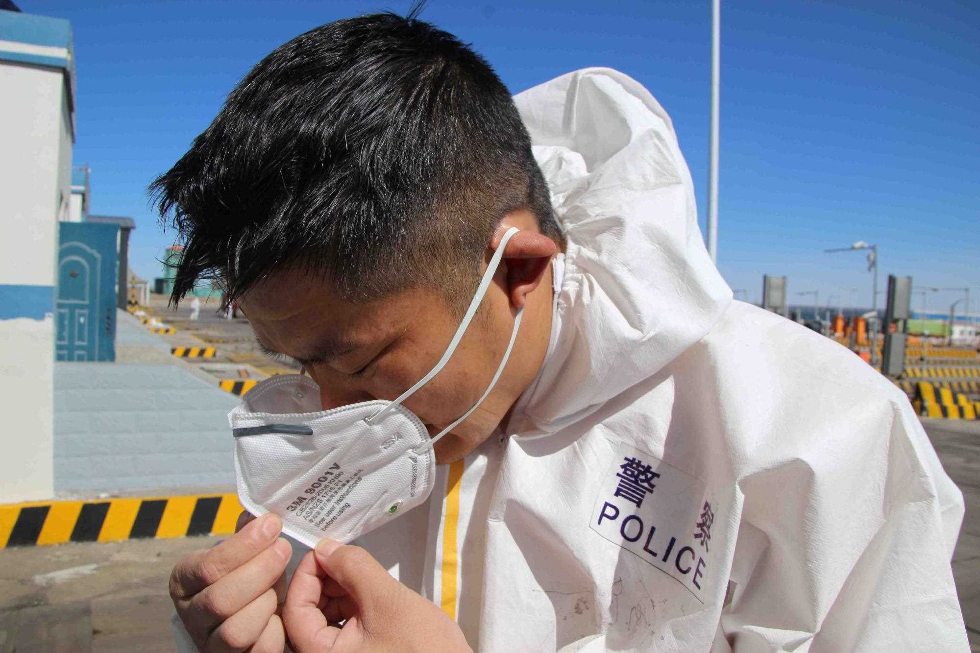 民警摘下口罩