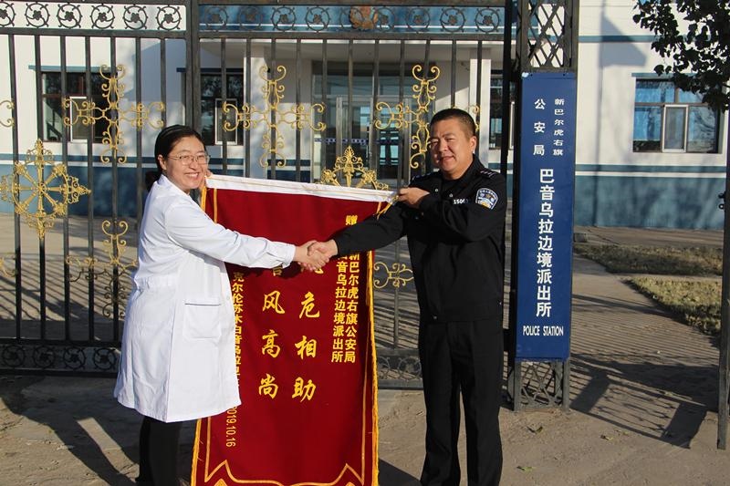 近日,白音烏拉衛(wèi)生院李院長到巴音烏拉邊境派出所,將一面印有“風(fēng)危相助、警風(fēng)高尚”的錦旗送到民警手中,感謝派出所民警長期以來對駐地衛(wèi)生院和居民的幫助和關(guān)愛。