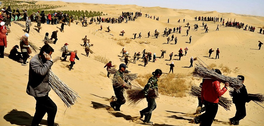 “庫布其模式最鮮明的底色是始終堅持并充分發(fā)揮了黨的領(lǐng)導(dǎo)制度優(yōu)勢,在黨的領(lǐng)導(dǎo)下,政府的政策平臺優(yōu)勢和企業(yè)創(chuàng)新市場化產(chǎn)業(yè)化路徑的機(jī)制優(yōu)勢相結(jié)合,產(chǎn)生了強(qiáng)大的創(chuàng)新驅(qū)動力”,億利資源集團(tuán)黨辦主任賀鵬飛說,“同時必須緊緊地依靠當(dāng)?shù)剞r(nóng)牧民,攜手治理,共同受益。”在杭錦旗委的大力支持和周邊鎮(zhèn)村黨組織的通力配合下,億利與緊鄰的23個村(嘎查)共建了聯(lián)合黨支部,依托聯(lián)合黨支部積極探索建立“聯(lián)企幫村”“村企聯(lián)營” 等機(jī)制,組建“產(chǎn)業(yè)聯(lián)盟”,因地制宜發(fā)展沙漠觀光、民宿旅游、牧光互補等特色項目,杭錦旗村(嘎查)集體經(jīng)濟(jì)不斷壯大提質(zhì)。先后組建232個治沙民工聯(lián)隊并分別建立了黨組織,參與億利在庫布其和全國各地實施的治沙生態(tài)工程。通過“黨建引領(lǐng)、村企共建、產(chǎn)業(yè)帶動、鄉(xiāng)村振興”的治沙生態(tài)和振興鄉(xiāng)村模式,近十年來在庫布其治沙平臺上累計有4萬多周邊群眾受益,人均年收入從30年前的不足400元增長到超過2.5萬元,涌現(xiàn)出了民工聯(lián)隊長敖特更花、種樹百萬元戶高毛虎、治沙老支書陳寧布、致富帶頭人高娃、孟克達(dá)賴、斯仁巴布等治沙致富典型。