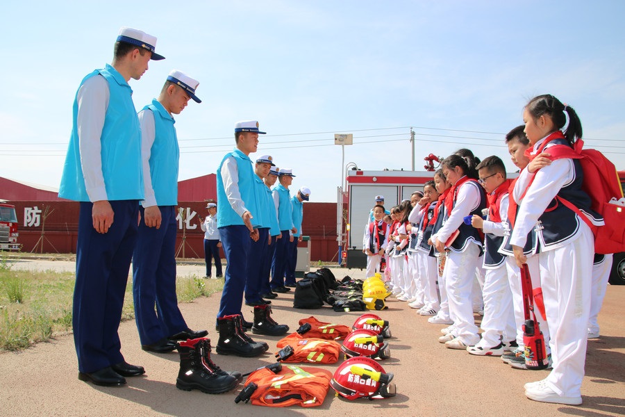 現(xiàn)場百名小肩甲志愿者和百名消防員共同參與“學黨史 慶百年 會百題”大手拉小手挑戰(zhàn)賽。他們跟隨消防員參觀“高精尖”消防設備及防護器具,感受科技滅火、科技強國的力量。同時,小肩甲志愿者還參觀和體驗了消防員日常訓練和平日里的生活。