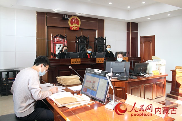 回民區(qū)人民法院商事金融審判團隊進行現(xiàn)場庭審。人民網(wǎng) 張聿修攝