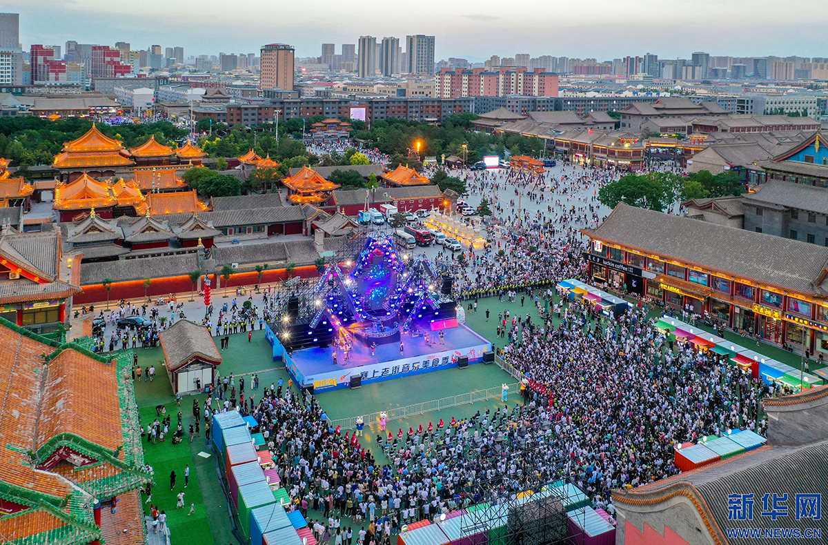 6月18日晚,2022年呼和浩特市“塞上老街音樂美食季”開幕式現場。新華網發(fā)(丁根厚攝)