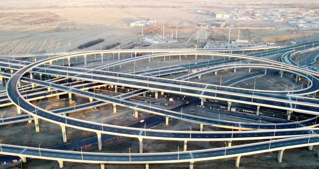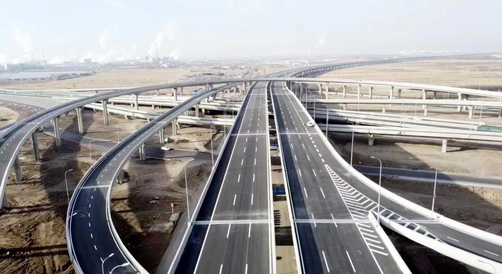 這是中建鐵投集團建設的呼和浩特市三環(huán)路呼準立交。 王寧攝