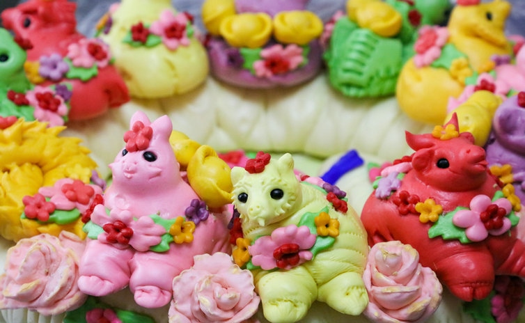 呼和浩特市非遺項(xiàng)目面塑傳承人孟素英的面塑作品(圖片均由土左旗融媒體中心提供)