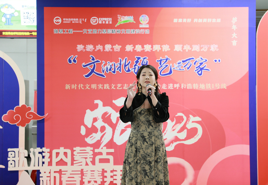 北疆新聞呼和浩特1月1日電(記者 張楊)“夢中的呼和浩特,胸懷像草原遼闊……”2025年1月1日上午,悠揚的歌聲在呼和浩特地鐵 1 號線內(nèi)蒙古博物院站飄揚。新年第一天,“歌游內(nèi)蒙古 新春賽拜儂 順豐到萬家”新時代文明實踐文藝志愿服務(wù)活動在此舉行,現(xiàn)場除了青城市民耳熟能詳?shù)脑瓌?chuàng)歌曲《夢中的呼和浩特》外,根據(jù)南北朝民歌改編的《敕勒歌》、布里亞特蒙古族民歌《吆赫爾》、二人臺傳統(tǒng)唱段《拜大年》、相聲表演《說學(xué)逗唱》、手風(fēng)琴獨奏《我的少女時代》、蒙古舞《迷途的羔羊》等精彩紛呈的節(jié)目,讓往來的乘客們紛紛駐足、高聲喝彩。