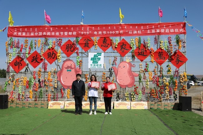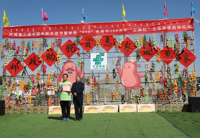 張偉)“今年計(jì)劃銷售100萬斤‘后旗紅’馬鈴薯?!?月20日,慶祝第三屆中國農(nóng)民豐收節(jié)暨中國郵政“919電商節(jié)”100萬斤“后旗紅”馬鈴薯發(fā)貨儀式,在內(nèi)蒙古烏蘭察布市察右后旗烏蘭哈達(dá)蘇木朝陽村舉行。中國郵政集團(tuán)烏蘭察布市分公司副總經(jīng)理朱學(xué)勇接受記者采訪時(shí)表示,作為中國郵政集團(tuán)在內(nèi)蒙古地區(qū)打造的唯一“一省一品”特色農(nóng)產(chǎn)品品牌“后旗紅”,2018年銷售12萬斤,2019年銷售52萬斤,“后旗紅”馬鈴薯搭乘郵政綠色快車,走向全國各地,已經(jīng)成為消費(fèi)者心目中的網(wǎng)紅產(chǎn)品。