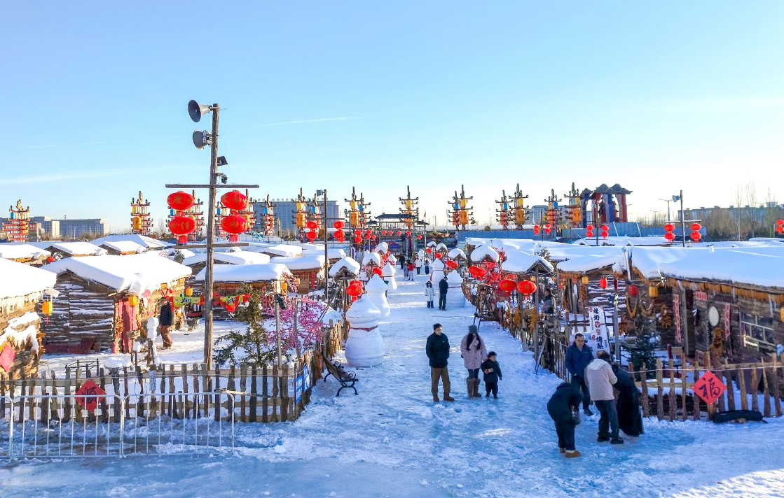 踏入雪鄉(xiāng)板塊,50個(gè)復(fù)刻北方傳統(tǒng)風(fēng)貌的院落集群映入眼簾,木柵欄上垂掛的紅燈籠與蓬松雪層相映成趣,屋檐下懸垂的雪舌、雪簾勾勒出童話般的輪廓。每個(gè)院落都藏著專屬打卡場(chǎng)景,推門而入可見(jiàn)家庭場(chǎng)景,窗外是皚皚白雪,屋內(nèi)飄著燒烤、火鍋和奶茶的醇厚香氣,瞬間驅(qū)散冬日寒意。游客穿梭其間,鈴鐺輕響,為這份雪鄉(xiāng)煙火氣增添了濃郁的民族風(fēng)情。