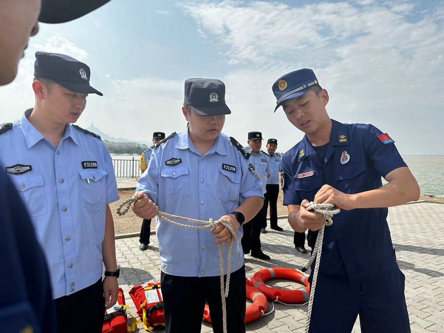 2023年8月10日上午10時(shí)許, 按照演練預(yù)案先由烏海市海勃灣區(qū)濱河消防救援站講解了簡單實(shí)用的繩結(jié)系法、救生圈的使用,救生衣的正確穿脫等,之后由此為基礎(chǔ)進(jìn)行繩圈連接,拋圈練習(xí)。學(xué)習(xí)結(jié)束后現(xiàn)場參訓(xùn)人員利用所學(xué)知識按照二套預(yù)案開展不同場景模擬警情演練。