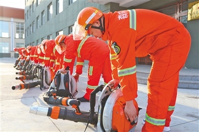 森林消防隊員正在進(jìn)行防滅火應(yīng)急演練。
