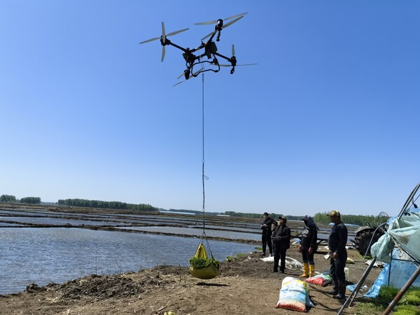 好力保鎮(zhèn)是興安盟大米的核心產區(qū),今年水稻種植面積達12.7萬畝,插秧任務重。為提高春耕效率、降低勞動強度,當地政府積極引導農戶引入無人機運苗技術。這些經過專門改裝的無人機,配備了先進的定位系統和載重設備,一次能吊運10至12盤秧苗,每天可完成近100畝地的插秧運苗任務。而且,它們能夠突破田埂、溝渠的限制,在復雜地形的稻田里自由作業(yè)。