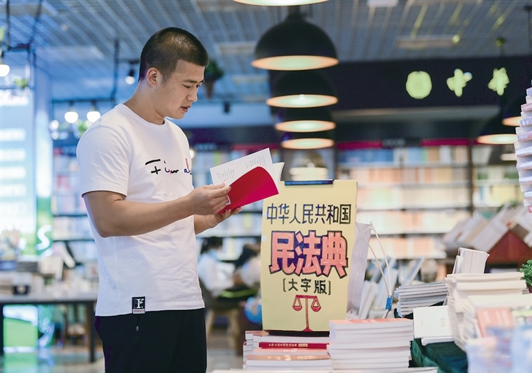 6月10日,呼和浩特市民在內(nèi)蒙古新華書店購買《中華人民共和國民法典》。據(jù)工作人員介紹,《中華人民共和國民法典》自6月2日擺上貨架就十分吸引讀者目光,成為熱銷圖書,截至目前該書店訂購量已逾2000冊。攝影/北方新報正北方網(wǎng)記者 牛天甲