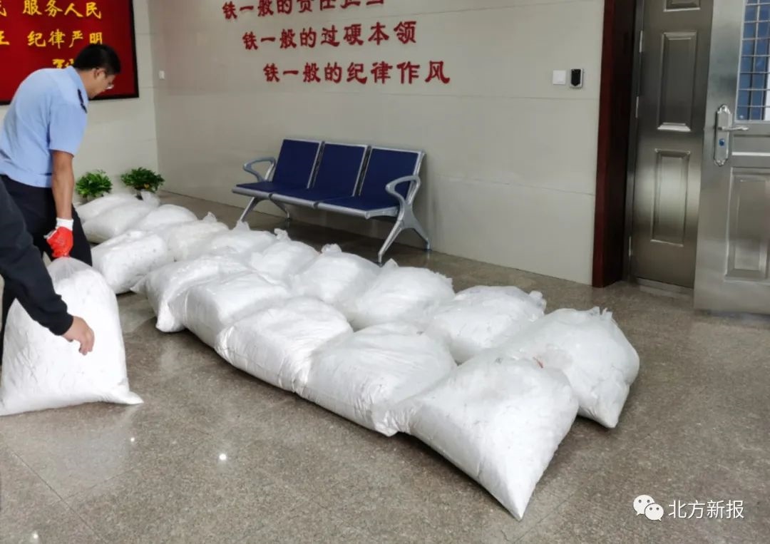 民警一路追蹤發(fā)現(xiàn),莊某駕駛的車輛未在山西省停留太久,又連夜返回包頭。有了前方的情報,專案組于9月13日凌晨5時,分為5個小組共30余警力,在黃河大橋收費站設(shè)卡進行堵截。民警提前封閉收費站車道,只留一條通過,因前后均有車輛,大大降低了嫌疑人駕車沖卡風險。清晨通行車輛本就不多,此舉并未引起嫌疑人警覺。當嫌疑車輛進入收費站的閘道時,潛伏民警立即沖上去將車輛司機控制,高某還未來得及下車逃跑,母子倆雙雙落網(wǎng)。專案組民警在莊某駕駛的車輛后備箱內(nèi)現(xiàn)場查獲毒品咖啡因30編織袋共750公斤。