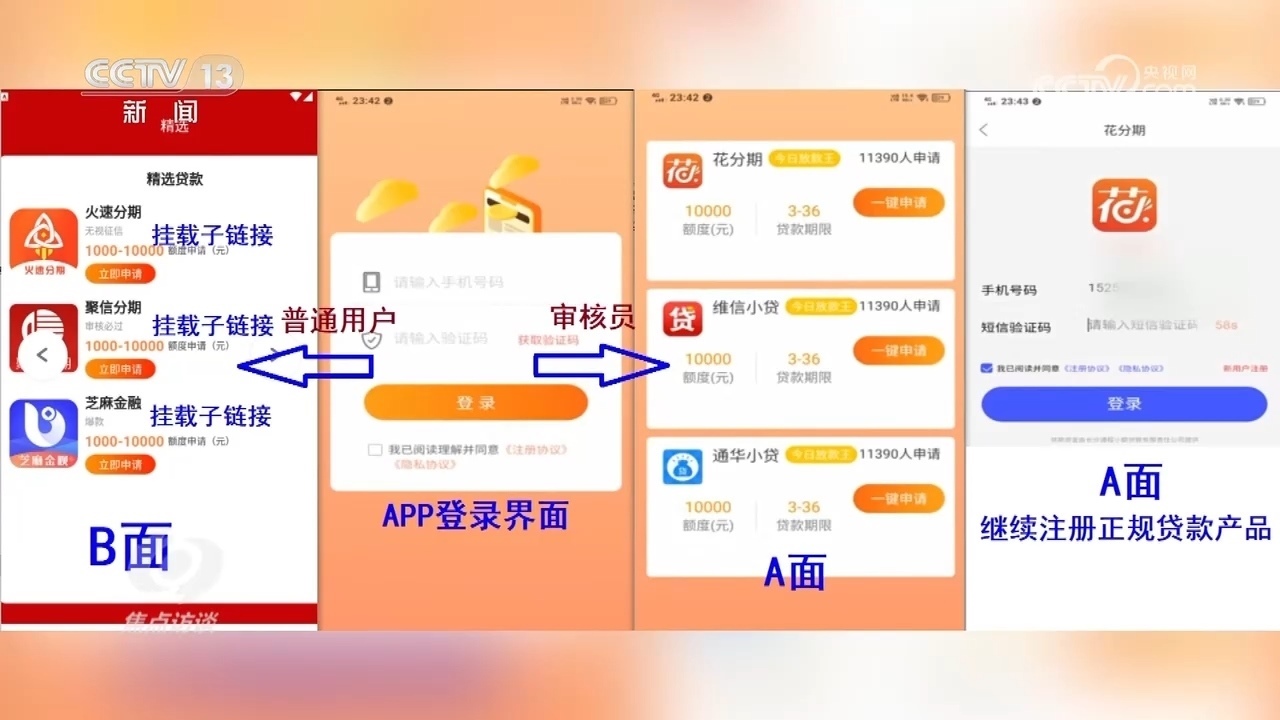安徽省蕪湖市公安局經(jīng)開區(qū)分局偵查打擊部警務(wù)技術(shù)二級主管高陽:“提供審核的都是正規(guī)的貸款產(chǎn)品,點(diǎn)擊以后一步一步看起來都很正規(guī),這樣審核員就會(huì)通過,覺得這個(gè)APP是正常的,可以在官方應(yīng)用商城上架。但是普通用戶登錄以后,就會(huì)下載新的APP,新的APP都是詐騙APP。”
