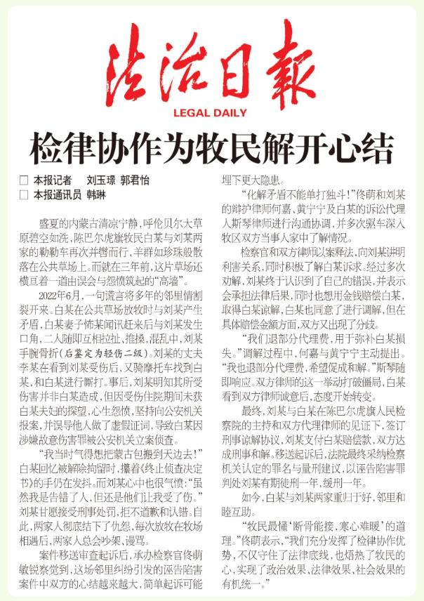 “牧民最懂‘?dāng)喙悄芙?,寒心難暖’的道理?!辟∶缺硎?,“我們充分發(fā)揮了檢律協(xié)作優(yōu)勢,不僅守住了法律底線,也焐熱了牧民的心,實現(xiàn)了政治效果、法律效果、社會效果的有機(jī)統(tǒng)一?!保?span style="text-align: justify;">作者 劉玉璟 郭君怡 韓琳)
