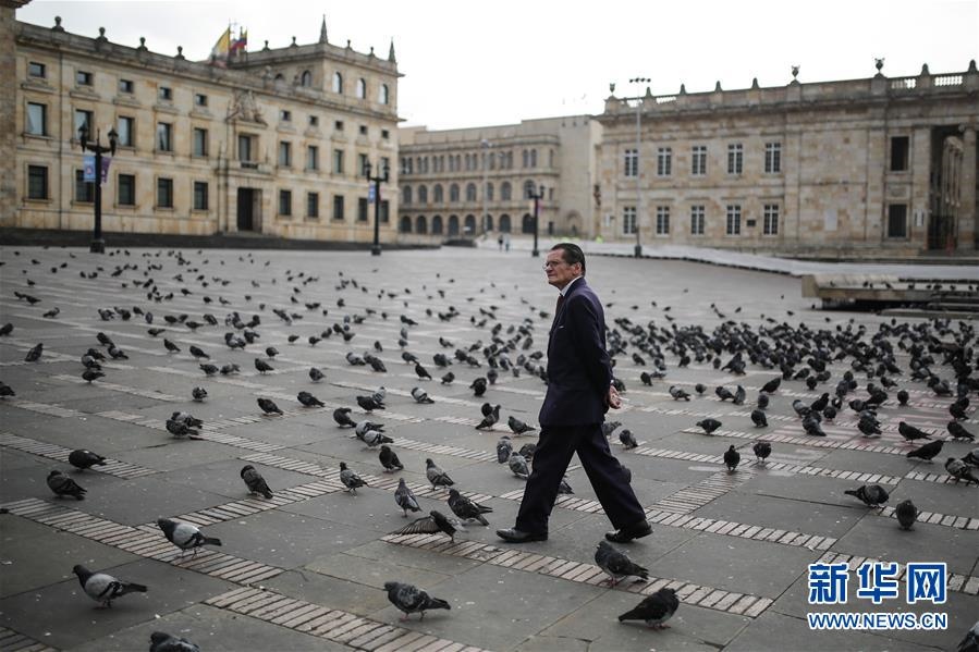 這是3月20日,在哥倫比亞波哥大,一名男子走在平時(shí)熙熙攘攘的玻利瓦爾廣場。新華社發(fā)(約翰·帕斯攝)