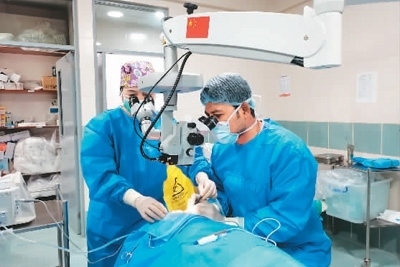 中方專家為當(dāng)?shù)鼗颊咦鲅劭茩z查。 新華社記者 車宏亮攝