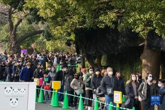 2月19日,在日本東京上野動(dòng)物園,游客排隊(duì)等待與大熊貓“香香”告別。新華社記者 張笑宇 攝