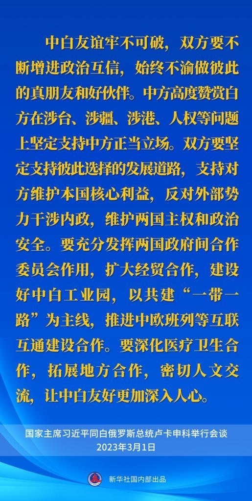 3月1日,國家主席習近平在人民大會堂同來華進行國事訪問的白俄羅斯總統(tǒng)盧卡申科舉行會談。一起來看習近平主席的談話要點。