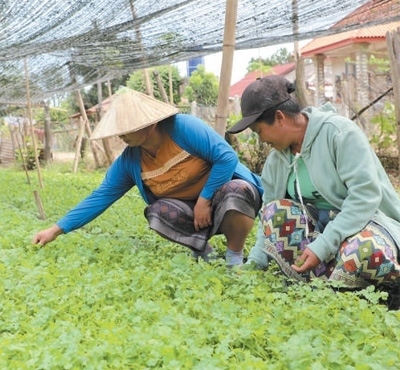 2019年開始,試驗站陸續(xù)在老撾各地建立新品種新技術推廣示范點,至今已在全國4個鄉(xiāng)村建立起技術推廣示范點,指導農民進行有機蔬菜、火龍果、水稻種植。金花村位于湄公河支流南俄河邊,曾經一到雨季,農地就會被淹。在中方技術支持下,村民開墾荒地種植蔬菜,累計種植面積超過500畝。“全村100多戶,現已有70多戶種植蔬菜,試驗站提供優(yōu)質種子、傳授種植技術和防治病蟲害方法,投入少、產量高,讓這里成了首都郊外的蔬菜基地。隨著收入不斷增加,不少村民蓋了新房子、買了汽車,日子越過越紅火?!贝彘L蘇里貢說。