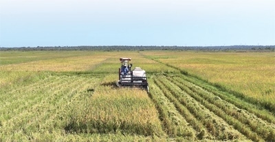 中國—烏干達農業(yè)合作產業(yè)園里,員工正在收割豐收的旱稻。中國—烏干達農業(yè)合作產業(yè)園供圖