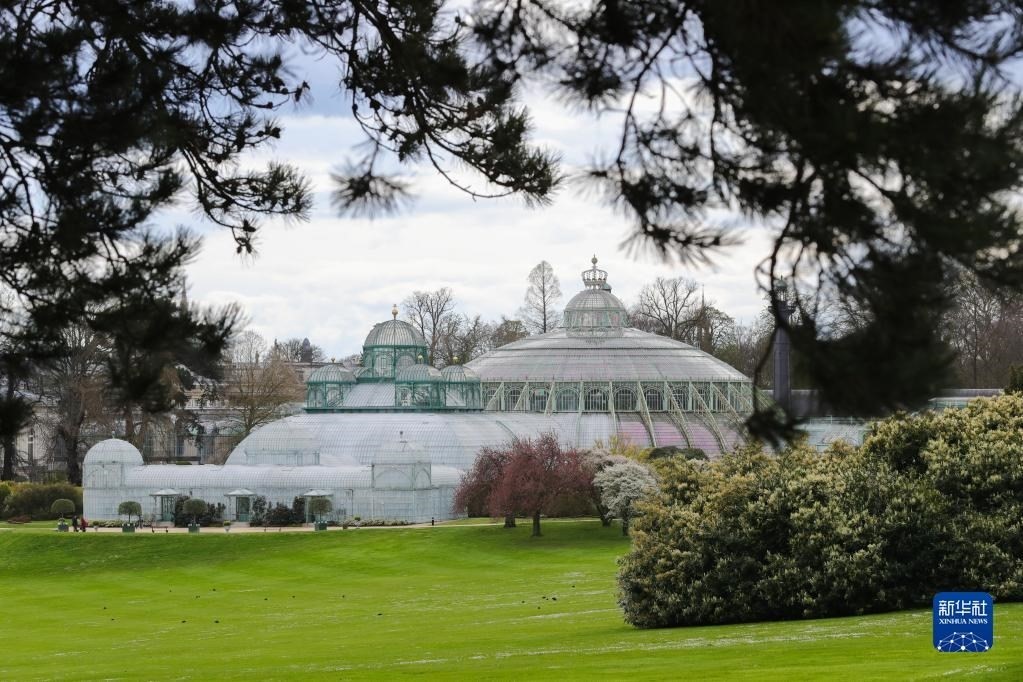 4月14日,人們在比利時布魯塞爾參觀拉肯宮王家溫室。