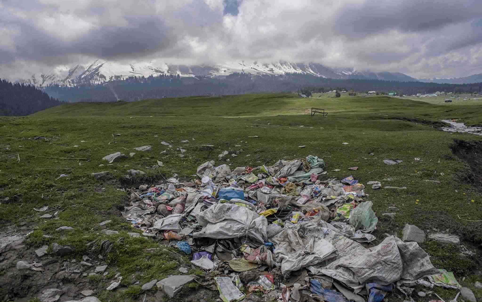 古爾瑪格,著名的滑雪勝地。在夏天,這個勝地擠滿了避暑的游客并留下了大量的垃圾。垃圾的堆積對高山生態(tài)造成了嚴(yán)重威脅,也對冰川溪水造成了嚴(yán)重威脅。盡管指示牌提醒人們禁止攜帶塑料,但對攜帶食物和水沒有限制。環(huán)保人士警告說,古爾瑪格及其周邊地區(qū)的到處都是被丟棄的塑料垃圾。
