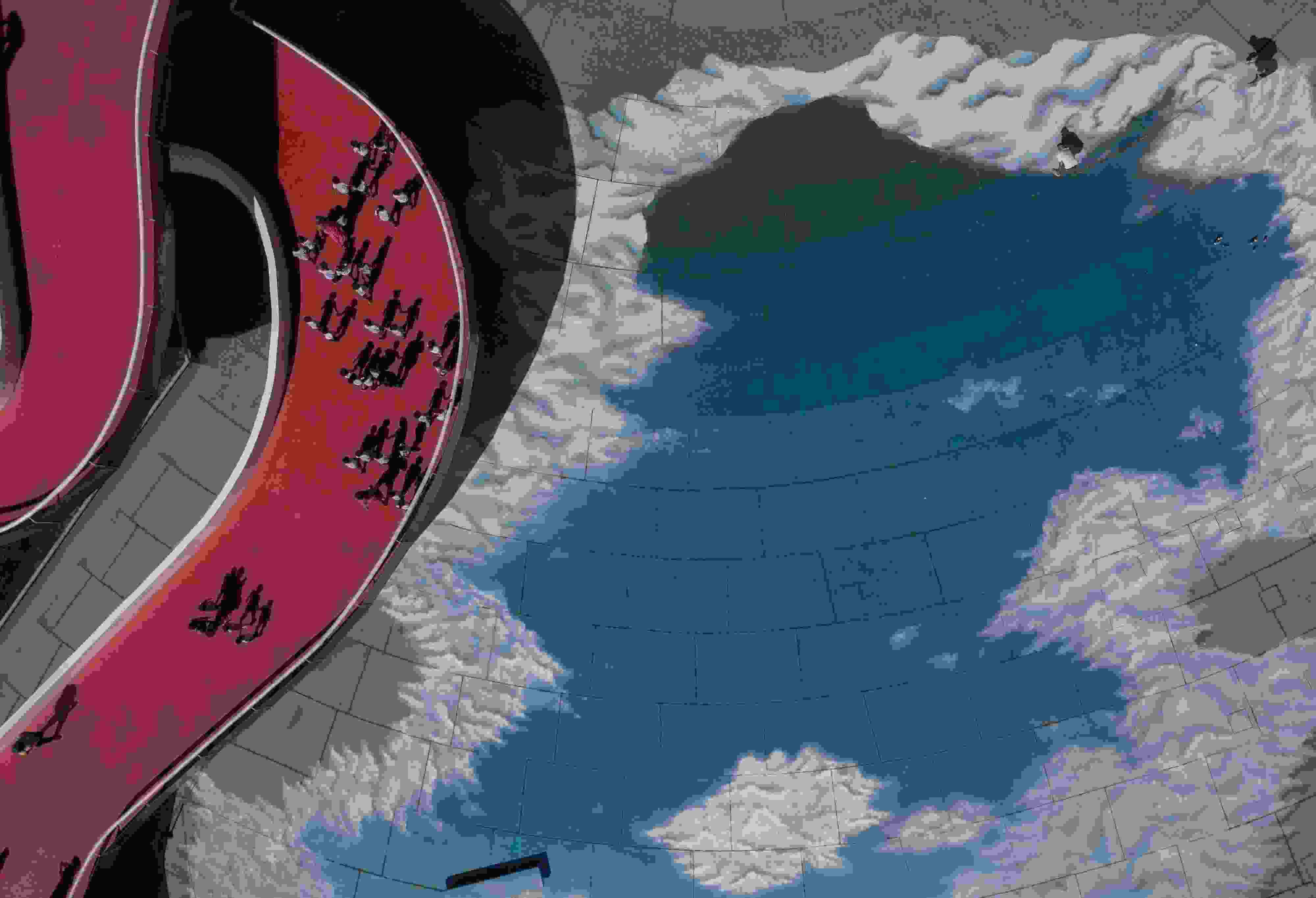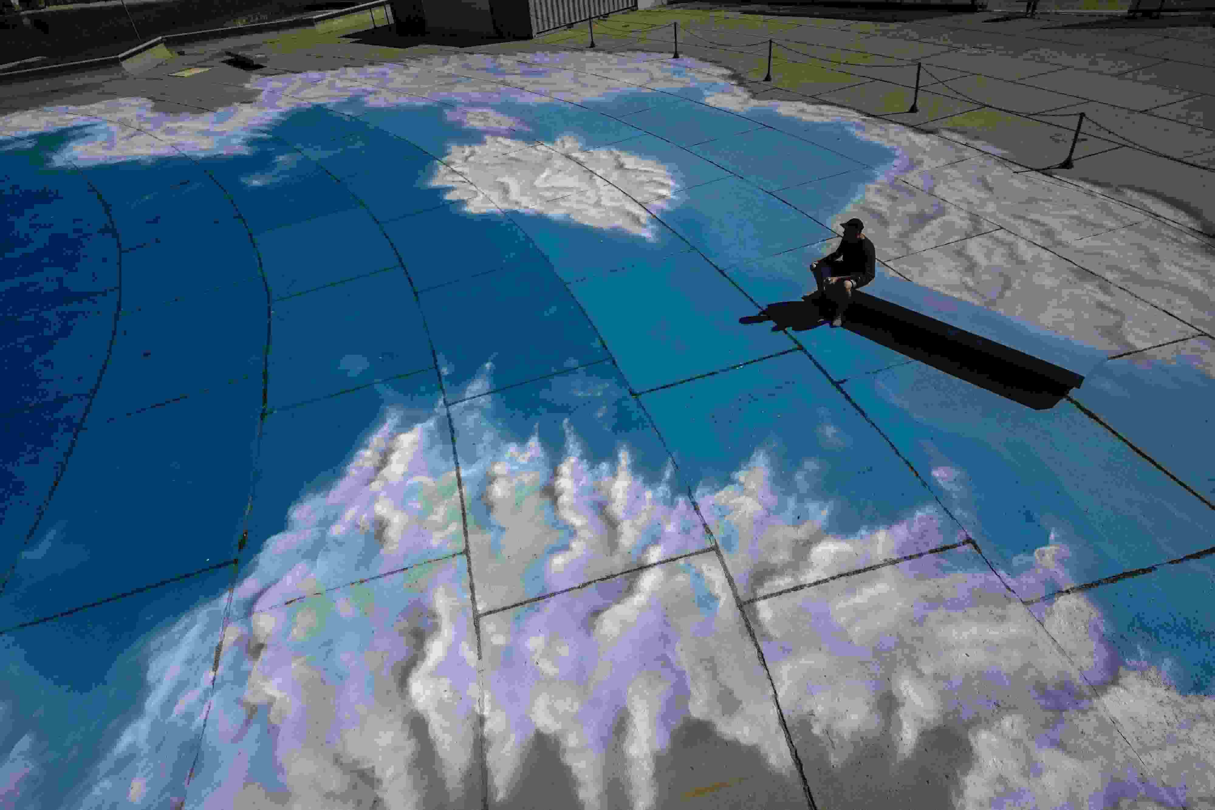當(dāng)?shù)貢r間2023年6月6日,巴西里約熱內(nèi)盧,藝術(shù)家在地面上繪制“藍(lán)天白云”。 視覺中國