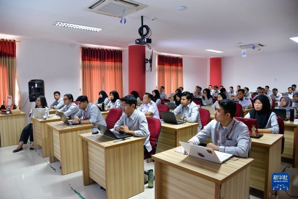 6月7日,在位于印度尼西亞茉莉芬市的印尼鐵路理工學(xué)院,學(xué)員在接受雅萬高鐵運(yùn)行控制中心調(diào)度人員培訓(xùn)。