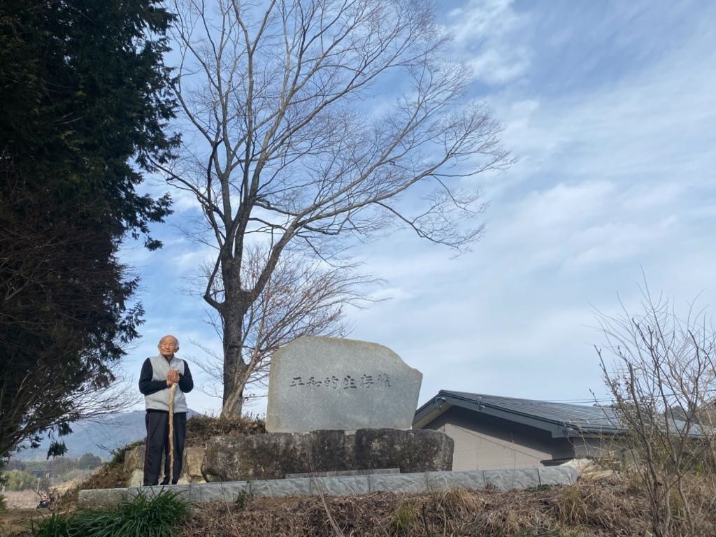 1月13日,在日本長野縣飯?zhí)锸?,原“為了和平的信州?zhàn)爭展實行委員會”會長及“飯?zhí)锸泻推劫Y料收集委員會”會長久保田昇站在自家門前留影。新華社記者郭丹攝