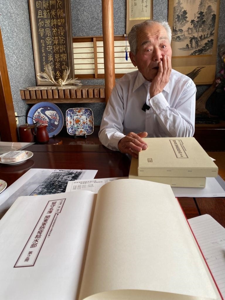 1月13日,在日本長野縣飯?zhí)锸?,原“為了和平的信州?zhàn)爭展實行委員會”會長及“飯?zhí)锸泻推劫Y料收集委員會”會長久保田昇在家中接受采訪。新華社記者郭丹攝