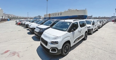 乘車從汽車船碼頭大門行至港口,記者看到,靠海的停車坪上,整齊排列著近6000輛正待出口或剛運(yùn)抵的小轎車,其中不乏中國(guó)品牌,如比亞迪、奇瑞、江淮等。它們將從這里中轉(zhuǎn),運(yùn)往意大利、黎巴嫩、土耳其、阿爾及利亞等國(guó)。