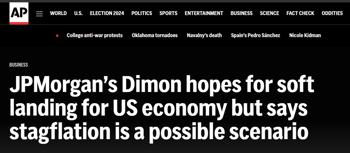 近日,摩根大通公司首席執(zhí)行官杰米·戴蒙在接受美聯(lián)社采訪時稱,他對美國經濟仍保持“審慎”,并表示通脹可能會在更長時間內變得更棘手,“滯脹也可能是(美國經濟面臨的)一種情況”。