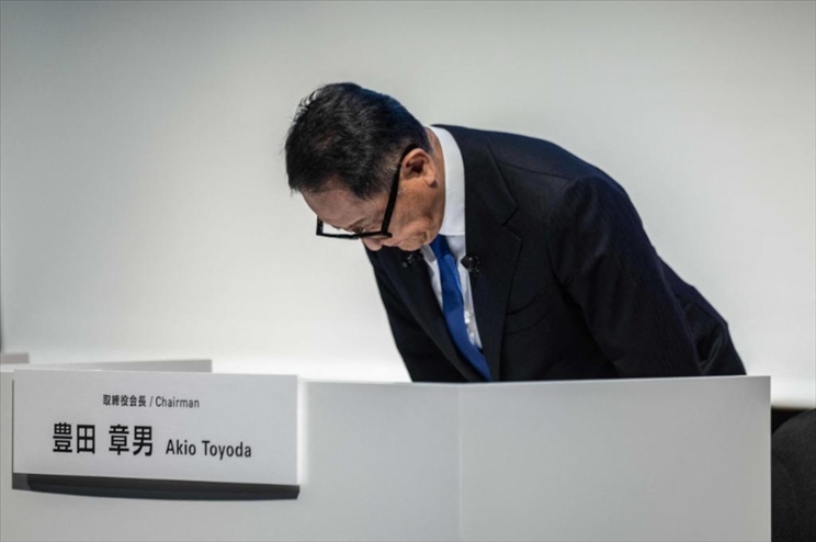 ?6月3日,豐田汽車公司會(huì)長(董事長)豐田章男在東京召開的記者會(huì)上鞠躬道歉。新華社/法新