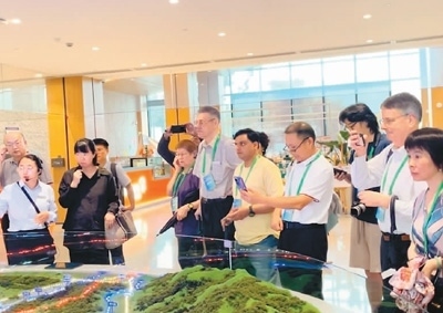 本次論壇還組織與會嘉賓前往浙江省安吉縣余村實地參觀考察。圖為中外嘉賓在余村了解當(dāng)?shù)貜摹翱可匠陨健钡健案簧金B(yǎng)山”的綠色發(fā)展之路。本報記者 孫亞慧攝