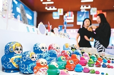 在位于山東青島的中國傳化(上合)國際物流港展廳,來自上合國家的特色商品在展出銷售。新華社記者 李紫恒攝