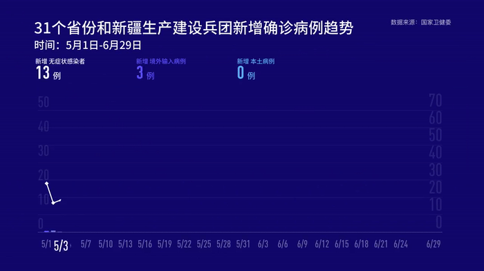 6月29日0—24時,31個省(自治區(qū)、直轄市)和新疆生產建設兵團報告新增確診病例19例,其中境外輸入病例11例(廣東4例,上海3例,四川3例,甘肅1例),本土病例8例(北京7例,上海1例);無新增死亡病例;新增疑似病例1例,為境外輸入病例(在上海)。