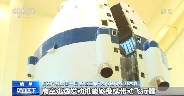 航天科技集團(tuán)一院長征二號F火箭總指揮 荊木春:飛行到120秒的時(shí)候,就把逃逸塔拋掉了,這個時(shí)候如果再需要進(jìn)行逃逸,我們就在整流罩上又裝了4臺叫高空逃逸發(fā)動機(jī)。出現(xiàn)故障的話,高空逃逸發(fā)動機(jī)能夠繼續(xù)帶動飛行器脫離故障火箭。