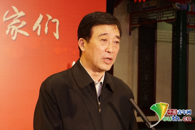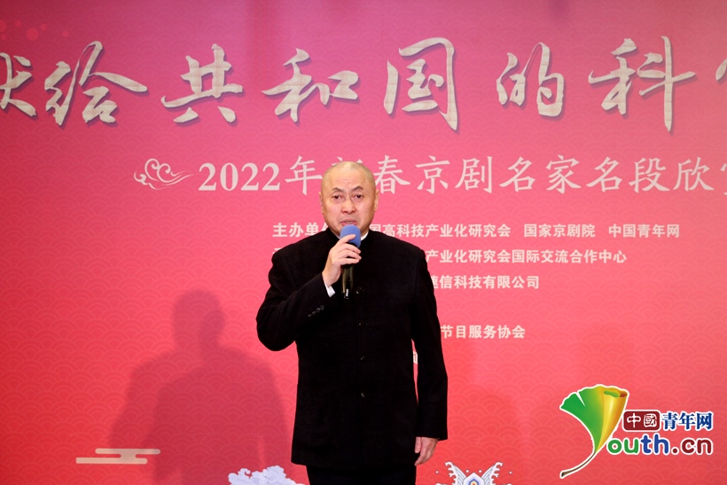 圖為國家京劇院黨委書記、副院長張亞峰向科技工作者送上新春祝福。中國青年網(wǎng)記者 楊晴 攝