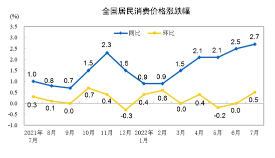 7月CPI同比上漲2.7%