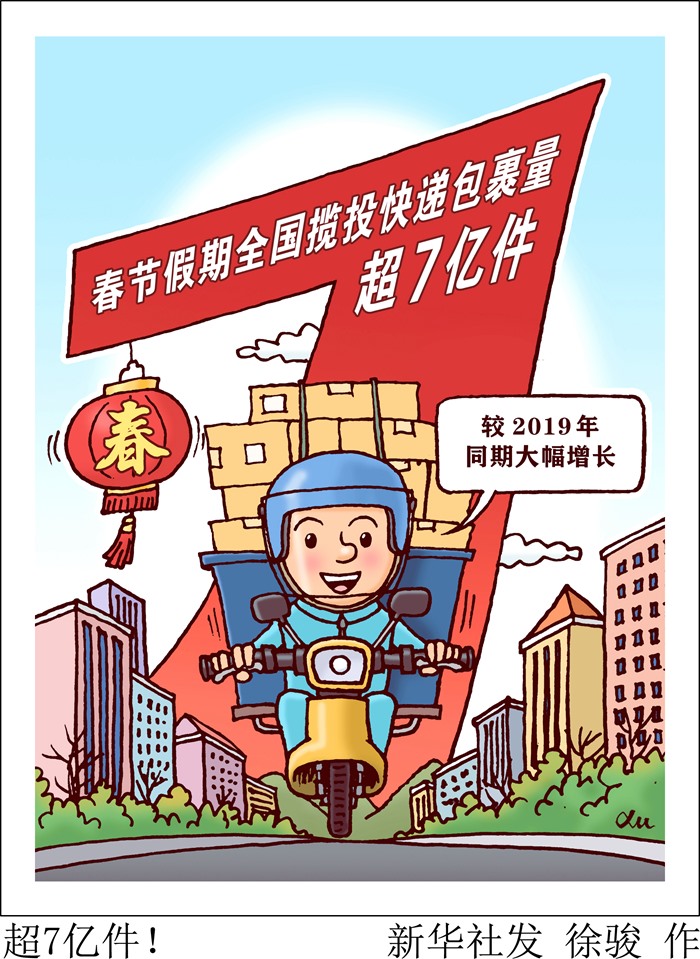 國家郵政局表示,今年春節(jié)期間,特色產(chǎn)品和節(jié)慶寄遞需求旺盛,農(nóng)產(chǎn)品繼續(xù)保持增長(zhǎng)態(tài)勢(shì)。郵政管理部門始終堅(jiān)持“保供應(yīng)、保暢通、保穩(wěn)定、保安全”,全力保障春節(jié)期間醫(yī)療物資寄遞、行業(yè)安全穩(wěn)定運(yùn)行和寄遞服務(wù)暢通有序,為人民群眾度過幸福安康歡樂祥和的春節(jié)提供了良好的寄遞服務(wù)保障。