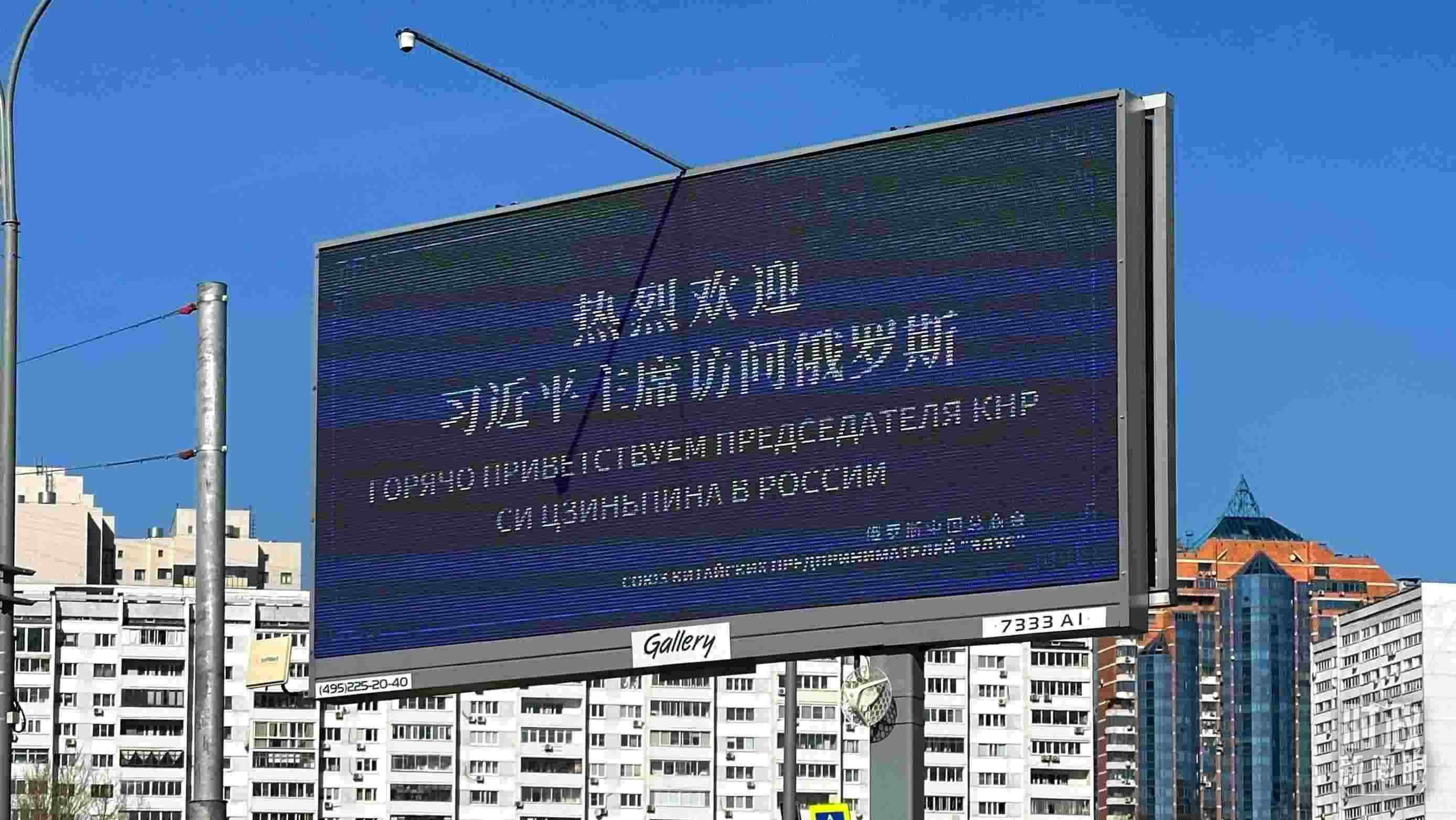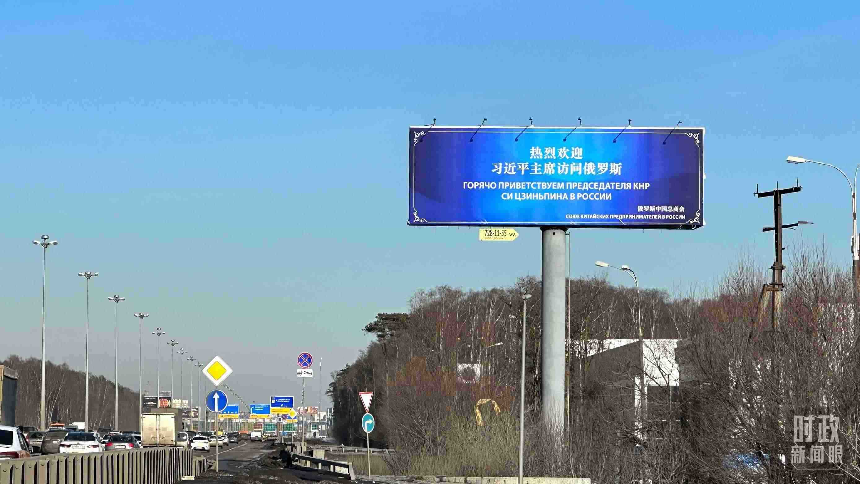 △莫斯科街頭,“熱烈歡迎習(xí)近平主席訪問俄羅斯”的歡迎標(biāo)語。(總臺(tái)央視記者覃思拍攝)