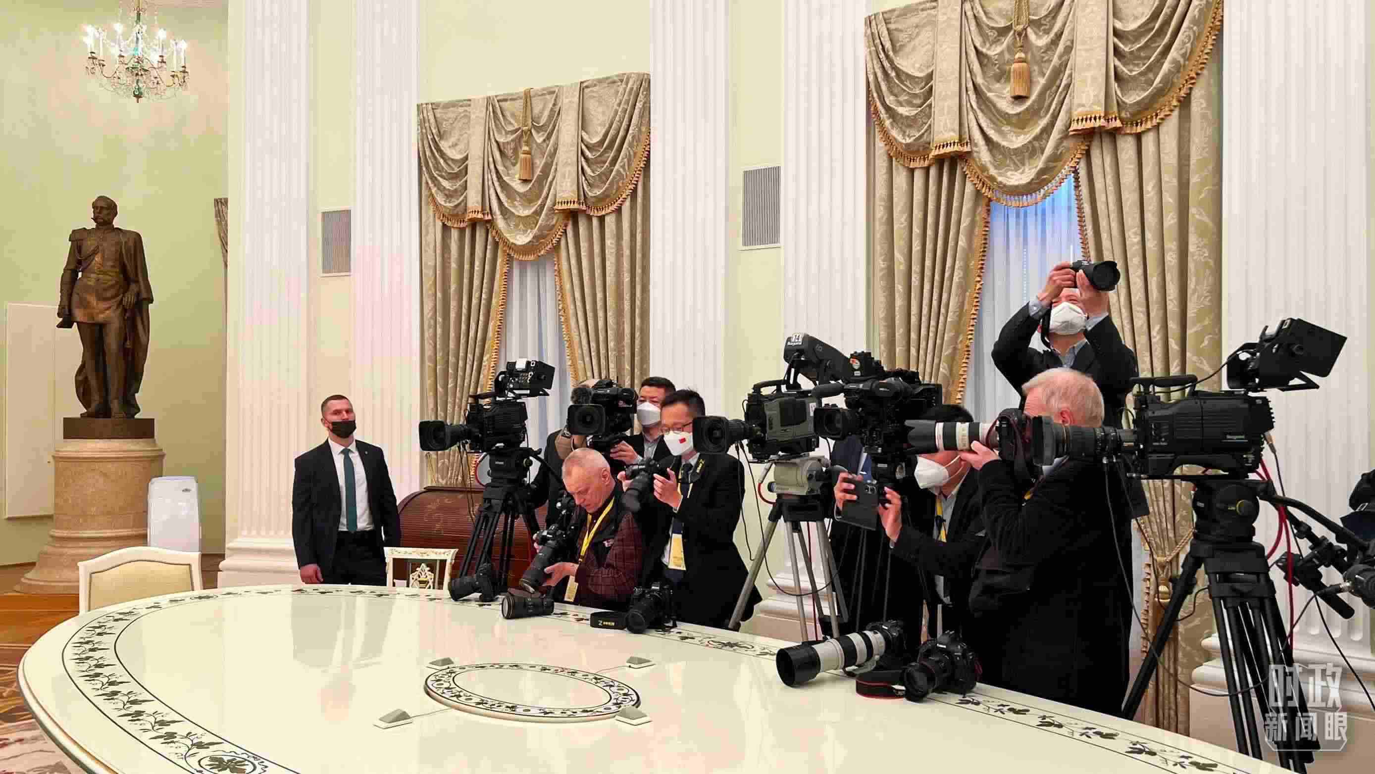 △3月20日下午,中外記者前往克里姆林宮拍攝中俄兩國元首會(huì)見。(總臺(tái)央視記者程鋮拍攝)