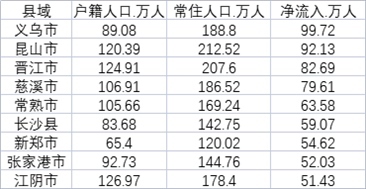 9縣人口凈流入超50萬:義烏近百萬 4個縣級市躋身大城市 人口凈流入是指常住人口與戶籍人口的差值,常住人口大......