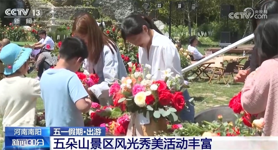 在河南南陽市五朵山景區(qū),“五一”假期吸引了大批游客。今天上午,入園的游客就已經(jīng)超過了1萬人。眼下正是南陽月季博覽會召開的時間,五朵山景區(qū)舉辦了一系列的賞花采風(fēng)活動,景區(qū)內(nèi)還組織了鄉(xiāng)村音樂節(jié)、漢服文化節(jié)和非遺民俗的表演,讓人們在欣賞美麗的自然風(fēng)光之余,感受傳統(tǒng)文化的魅力。