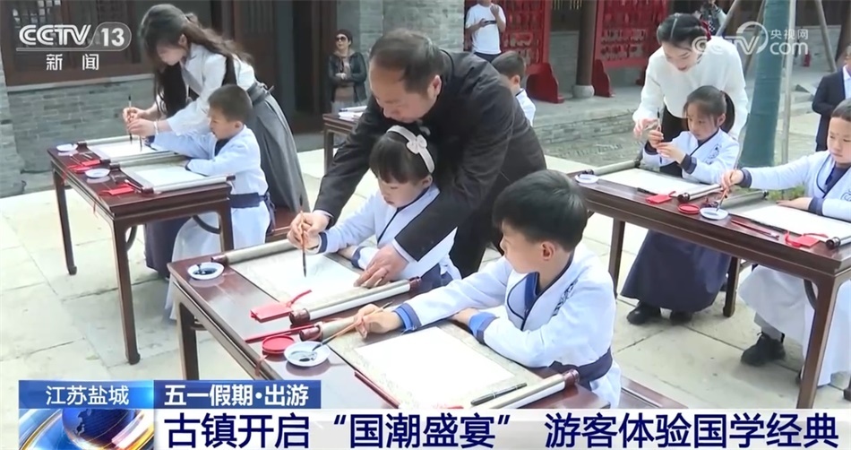 “五一”假期期間,江蘇鹽城鹽南高新區(qū)伍佑珠溪古鎮(zhèn)開啟了一場別開生面的“國潮盛宴”。大家追隨先賢的歷史足跡,在開筆禮、冠禮、六藝國學(xué)講堂等活動中體驗穿越千年的國學(xué)經(jīng)典。