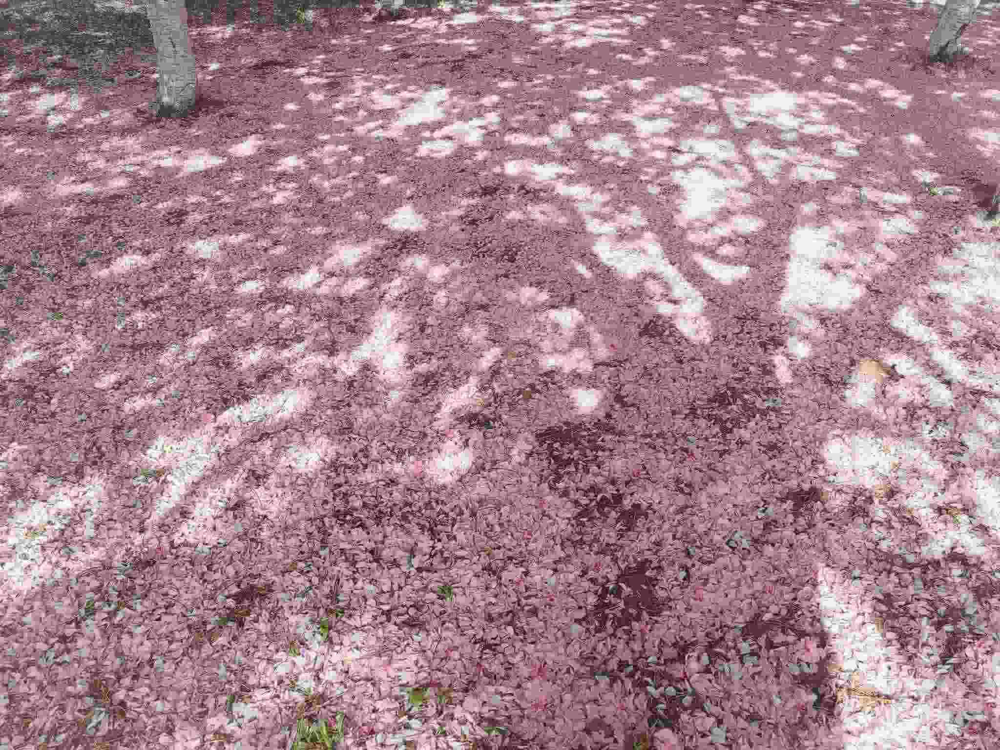 2023年4月29日,青島中山公園,經(jīng)歷風(fēng)雨之后,櫻花樹下落了厚厚一層花瓣。視覺中國
