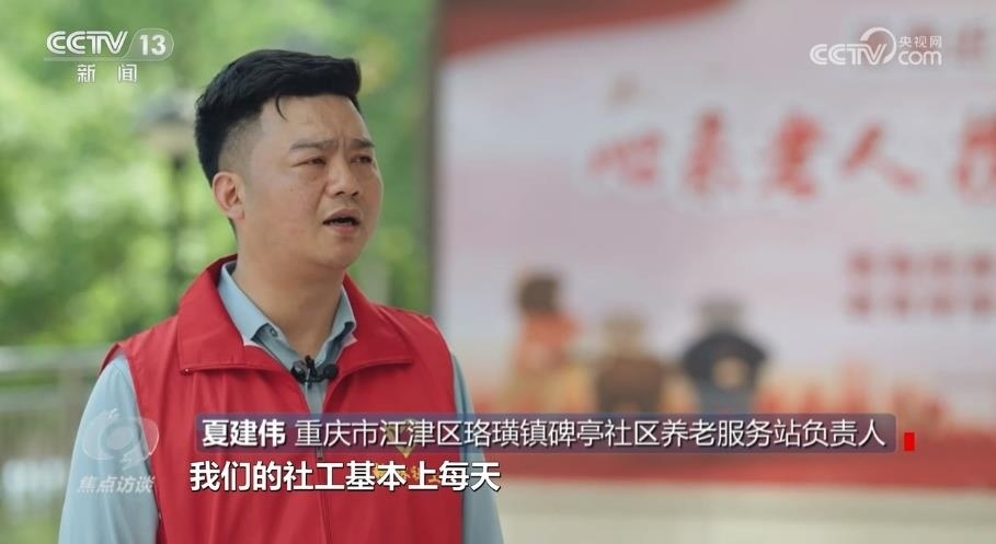 重慶市江津區(qū)珞璜鎮(zhèn)碑亭社區(qū)養(yǎng)老服務(wù)站負(fù)責(zé)人夏建偉:“一天下來(lái),滿滿當(dāng)當(dāng)?shù)?,我們的社工基本上每天都超過(guò)了兩萬(wàn)三千步的樣子。雖然說(shuō)很累,但是每一個(gè)社工都很愉快,都覺(jué)得在這個(gè)過(guò)程當(dāng)中找到了快樂(lè),也找到了成就感。”
