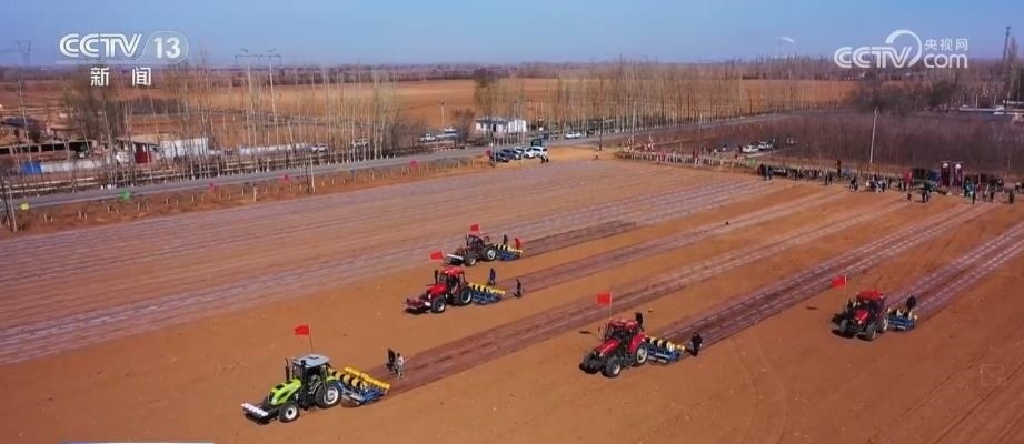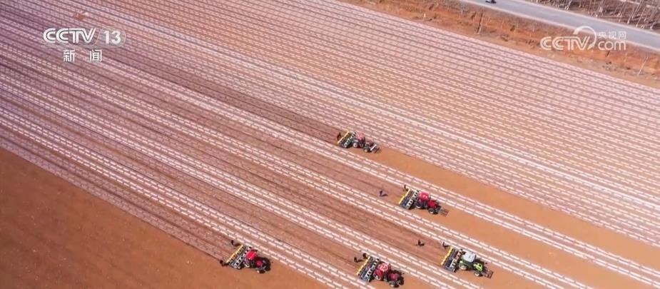 眼下,新疆瑪納斯縣65萬畝棉花全面開播。在文家莊村的棉田里,五臺(tái)裝有北斗導(dǎo)航系統(tǒng)的大馬力拖拉機(jī),正按照預(yù)先設(shè)定的播種線路,進(jìn)行精量播種。