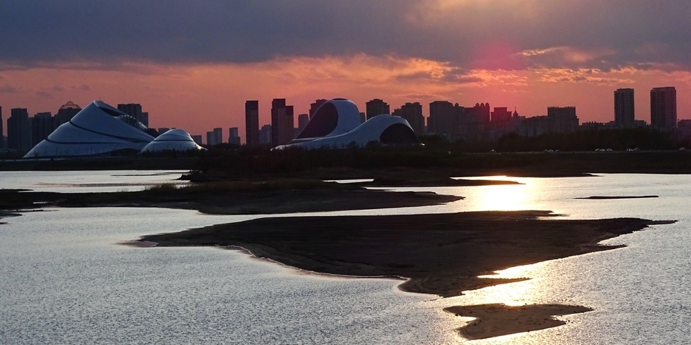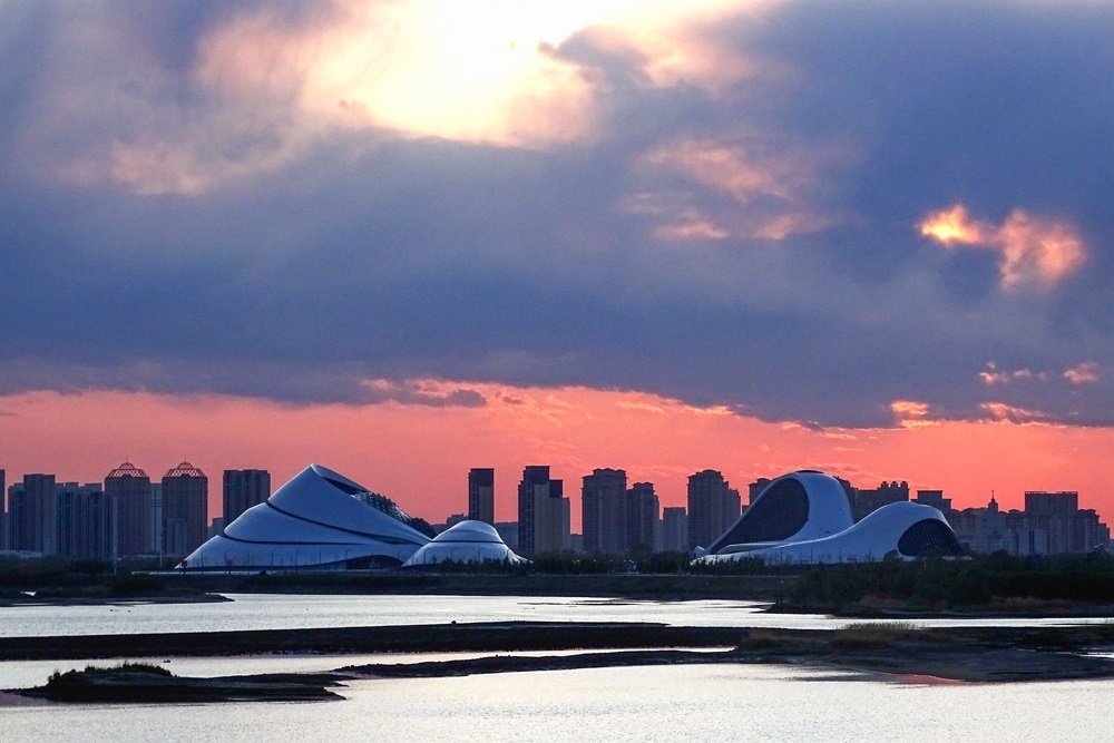 5月9日,落日時分的黑龍江省哈爾濱市太陽島濕地,晚霞將北國冰城裝扮得絢麗無比,美不勝收。 吳胡荼 攝