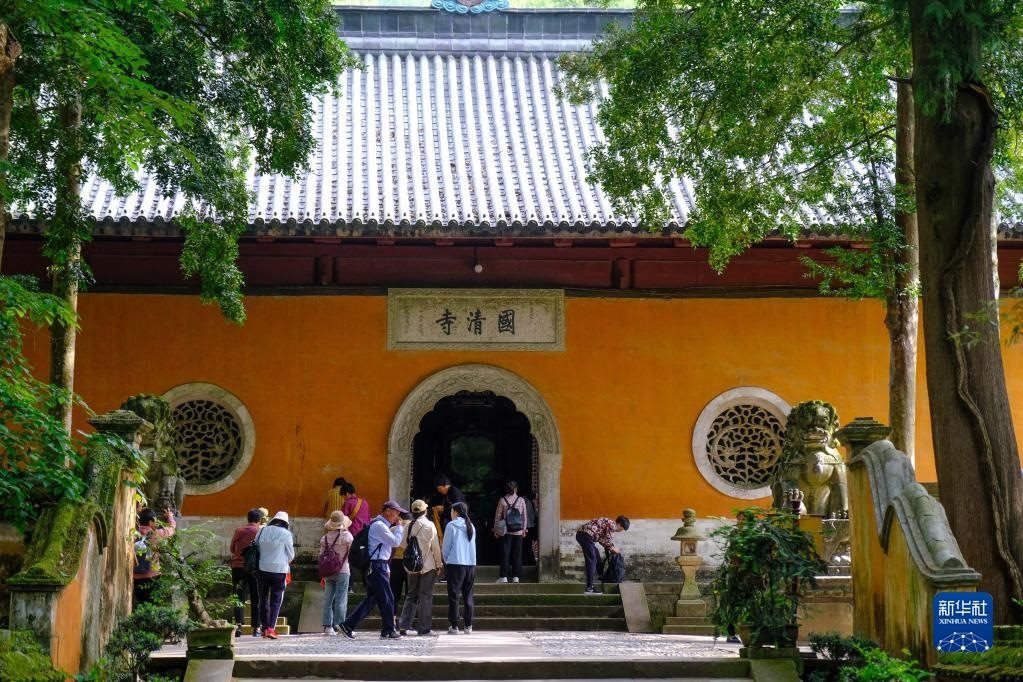 5月16日,游客在天臺(tái)縣國(guó)清寺參觀。